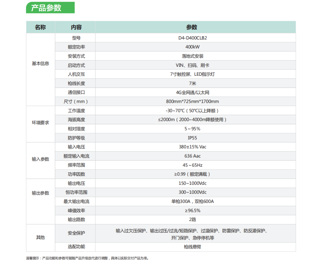 ▲400kW的重卡充电桩产品参数