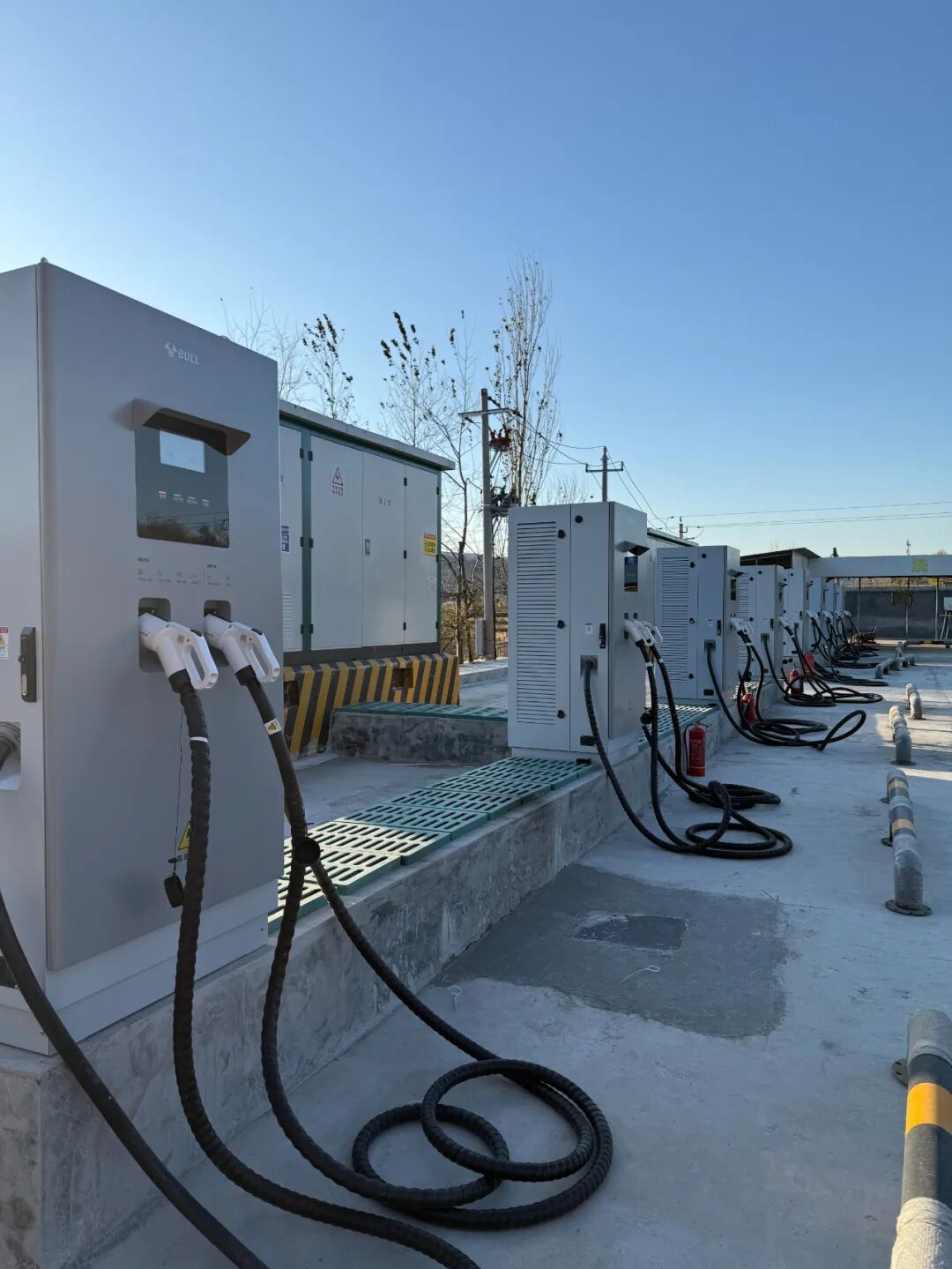 ▲山西垣曲县公牛重卡充电站(配有8台400kW重卡桩)