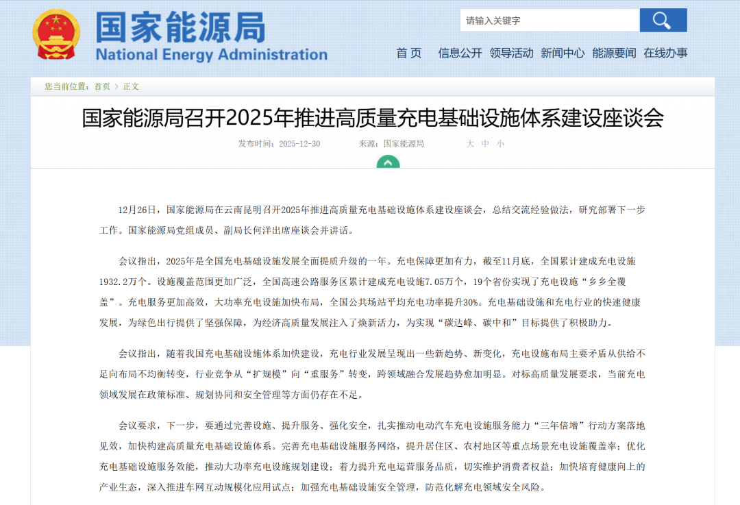 ▲国家能源局召开2025年推进高质量充电基础设施体系建设座谈会,为下一步工作定调