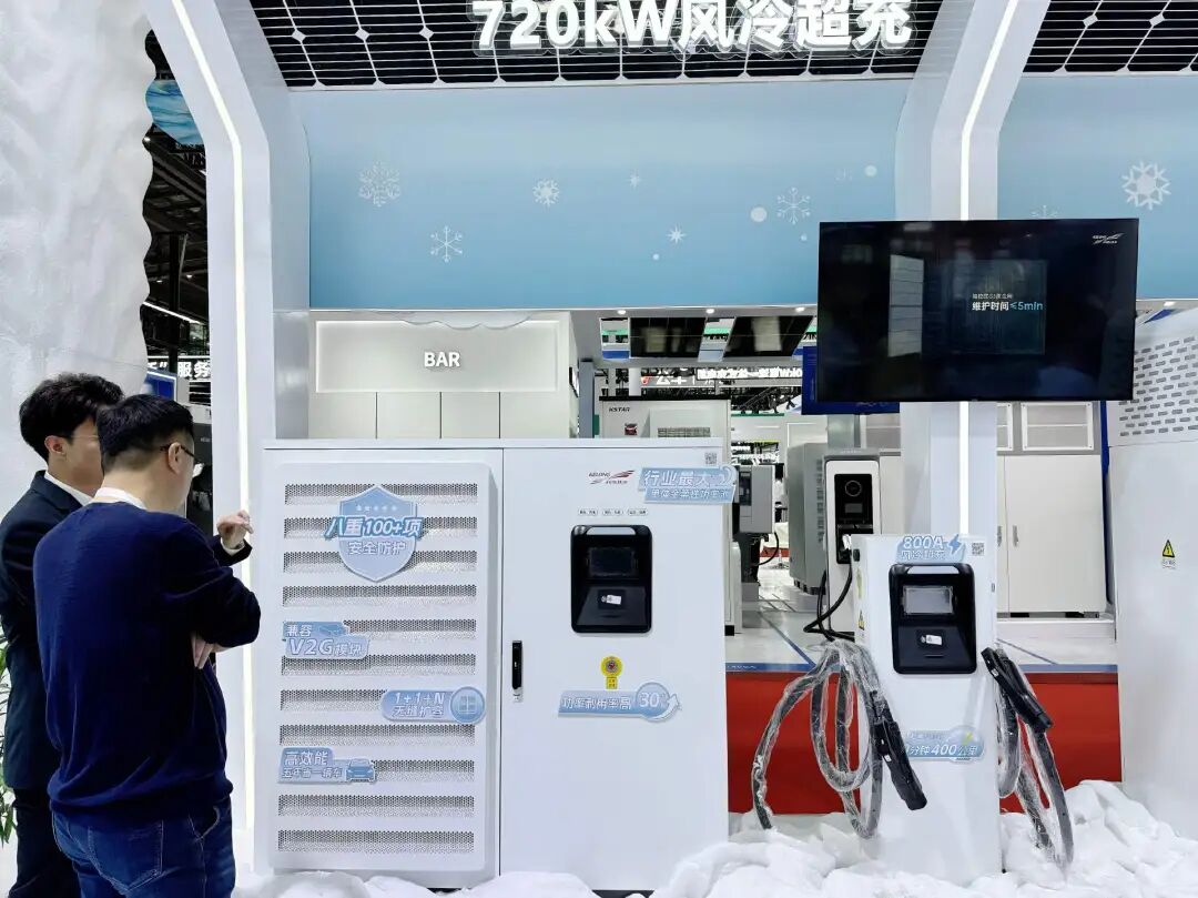 2025深圳充换电展期间,深圳科华展出的720kW风冷超充,通过搭载“行业最大单体全柔性功率池”,依托千枢矩阵投切技术,能够将整站功率利用率提升30%以上。该设备采用模块待机0功耗设计与整桩智能效率寻优技术,综合电损降低约1.6%,支持搭载97.5%效率的SiC充电模块,有效降低运营成本。同时,1+1+N的无缝扩容设计,可以根据业务增长灵活扩展,满足各类超充站建设需求。